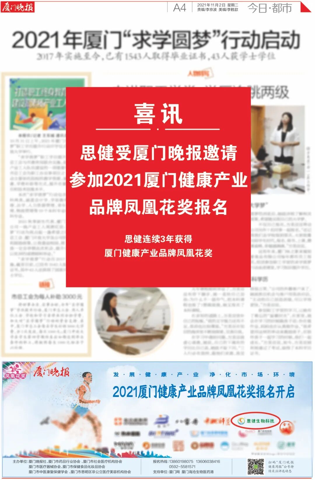 回首過往,思健品牌與廈門晚報(bào)結(jié)緣深厚:早在2021年,思健就受邀參與廈門健康產(chǎn)業(yè)品牌鳳凰花獎評選,憑借卓越品質(zhì)與良好口碑,連續(xù)三年蟬聯(lián)此項(xiàng)殊榮,成為廈門健康產(chǎn)業(yè)中一張閃亮的名片。不僅如此,思健還積極踐行企業(yè)社會責(zé)任,熱心助力“2025新年心愿”公益行動,用愛心溫暖鷺島。